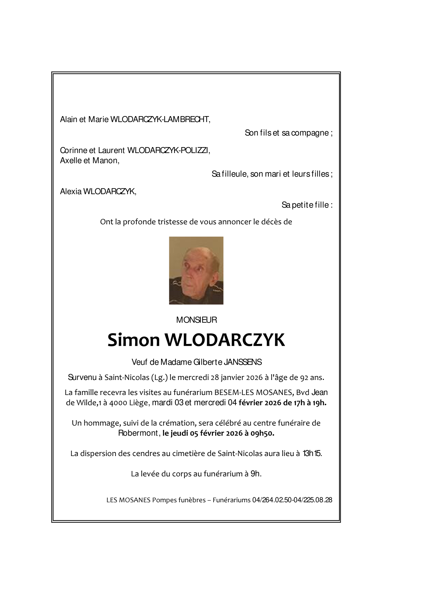 Overleden te Saint-Nicolas (Lg.) (4420) op woensdag 28 januari 2026 op 92-jarige leeftijd