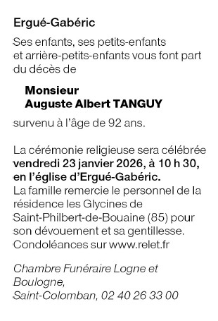 Décédé à Saint-Philbert-de-Bouaine (85660, France) le lundi 19 janvier 2026 à l'âge de 92 ans