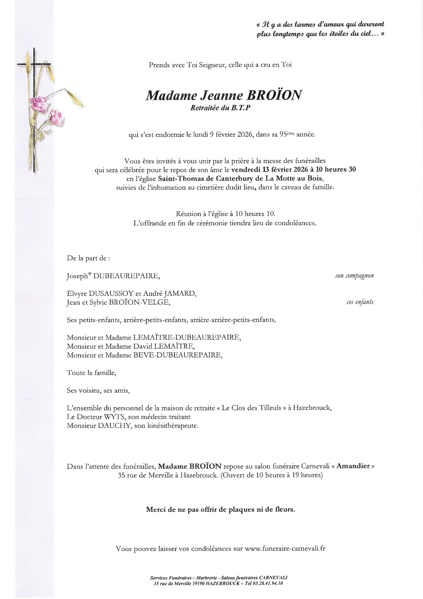 Overleden te Hazebrouck (59190, Frankrijk) op maandag 9 februari 2026 op 94-jarige leeftijd