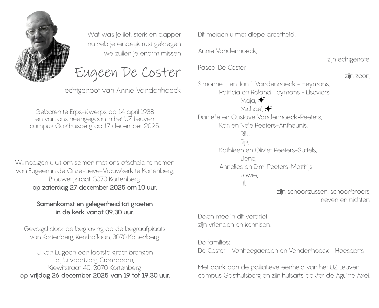 Décédé à Leuven (3000) le mercredi 17 décembre 2025 à l'âge de 87 ans