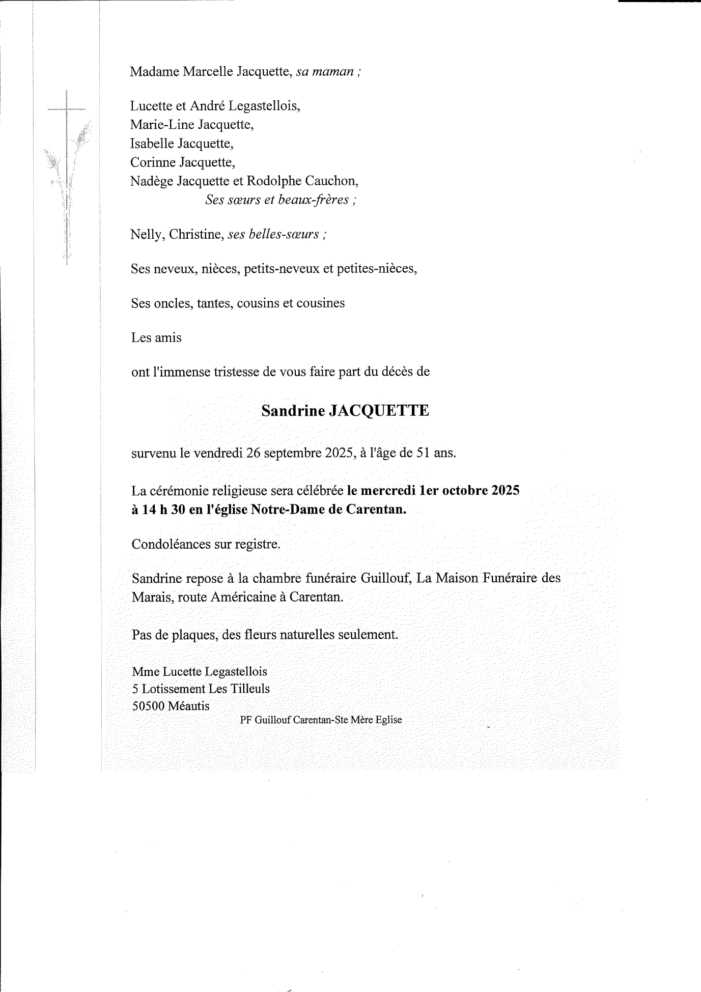 Décédée à Cherbourg (50100, France) le vendredi 26 septembre 2025 à l'âge de 51 ans