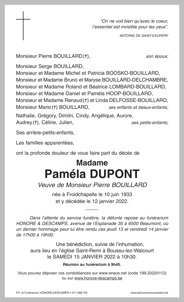Overleden te Froidchapelle (6440) op woensdag 12 januari 2022 op 88-jarige leeftijd