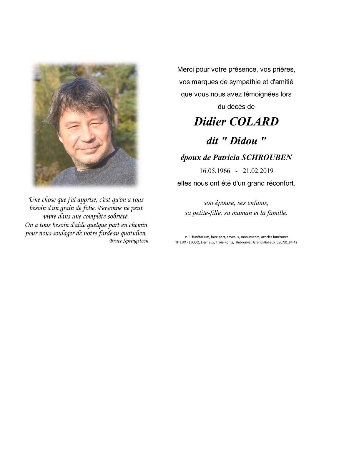Overleden te Stavelot (4970) op donderdag 21 februari 2019 op 52-jarige leeftijd