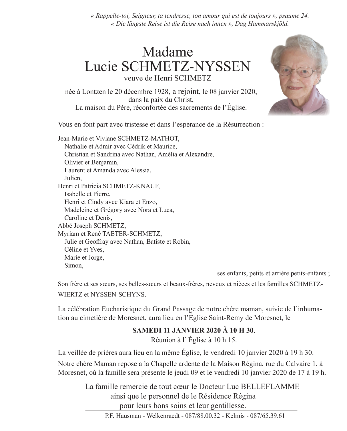 Died in Moresnet (4850) on 08 January 2020 at the age of 91 years