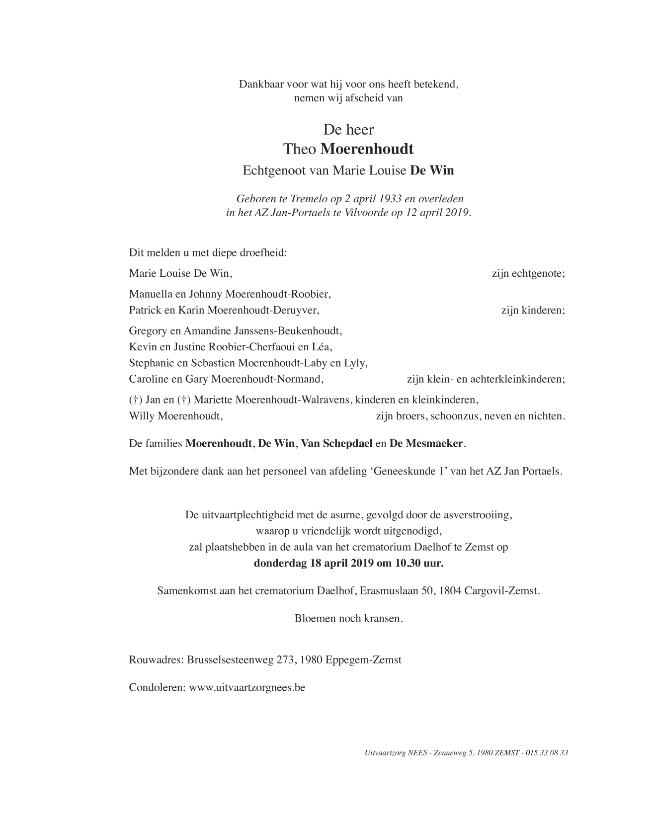 Fallecido en Vilvoorde (1800) el viernes, 12 de abril de 2019 a la edad de 86 años
