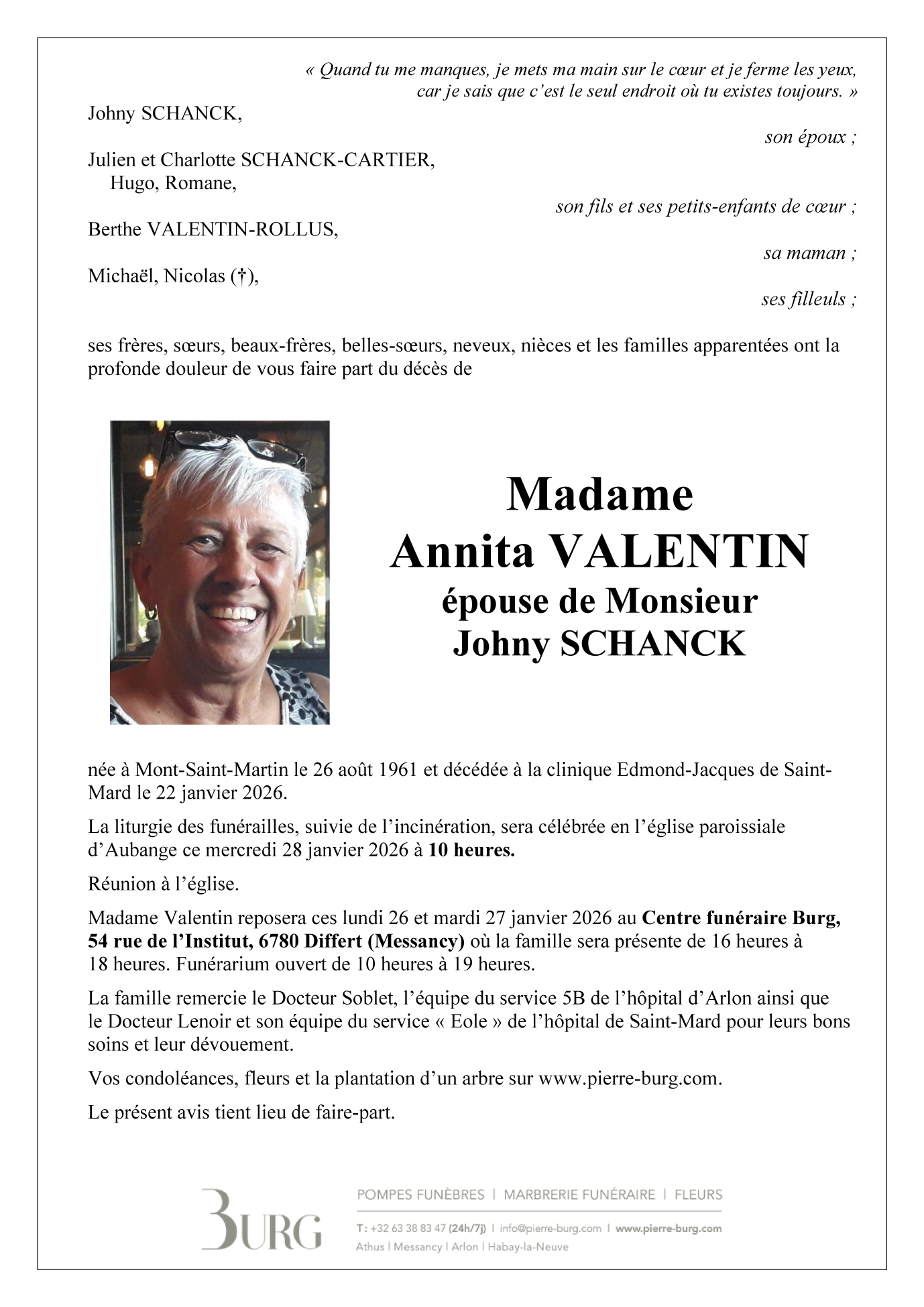 Died in Saint-Mard (6762) on 22 January 2026 at the age of 64 years