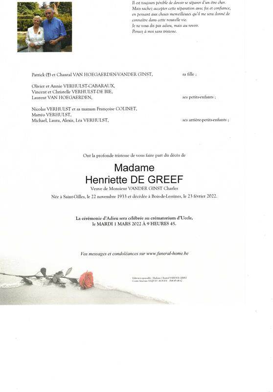 Née à Saint-Gilles (1060) le mercredi 22 novembre 1933