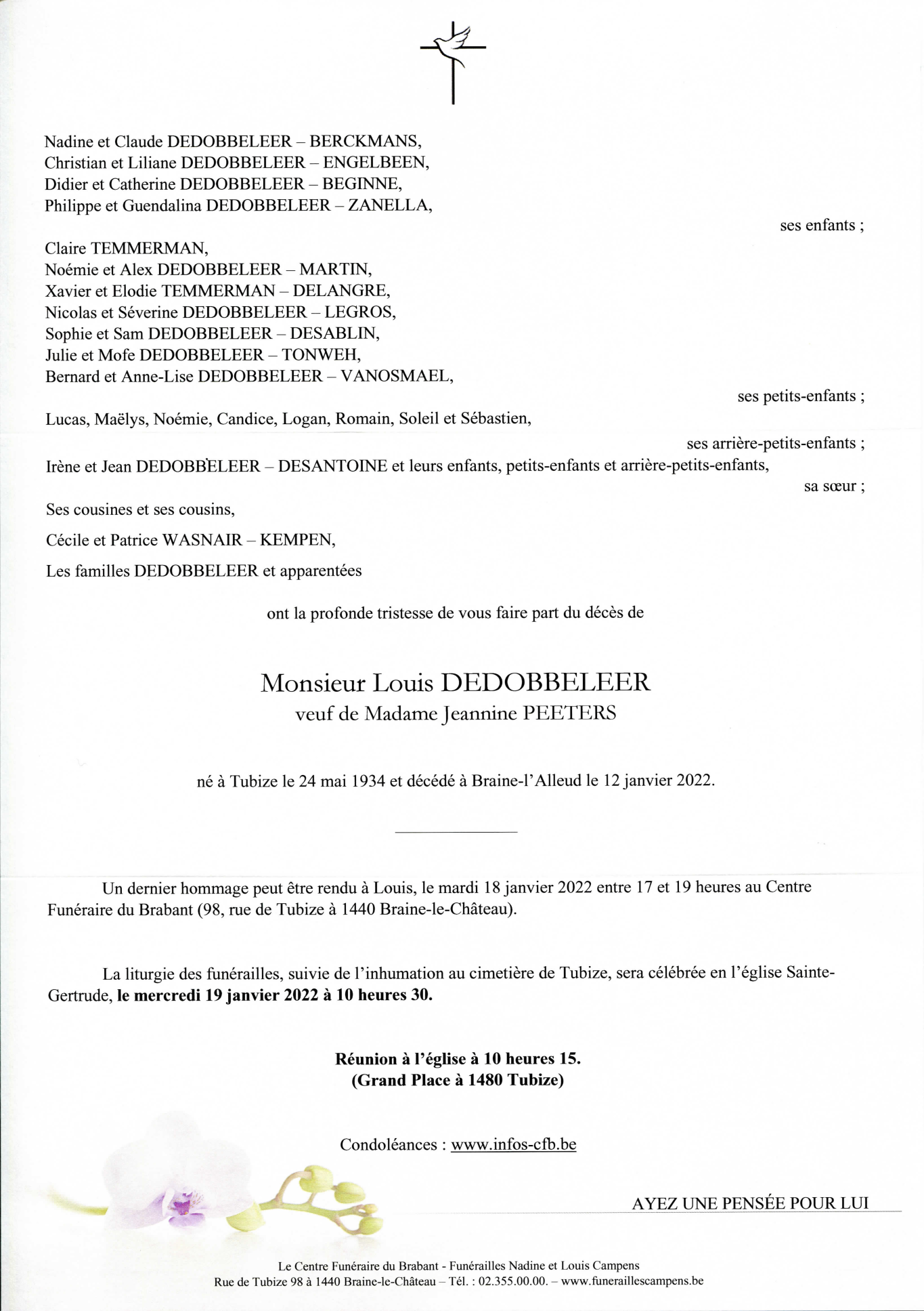 Fallecido en Braine-l'Alleud (1420) el miércoles, 12 de enero de 2022 a la edad de 87 años