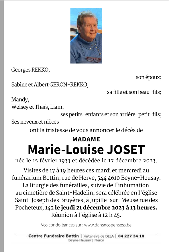 Fallecida en Chênée (4032) el domingo, 17 de diciembre de 2023 a la edad de 90 años
