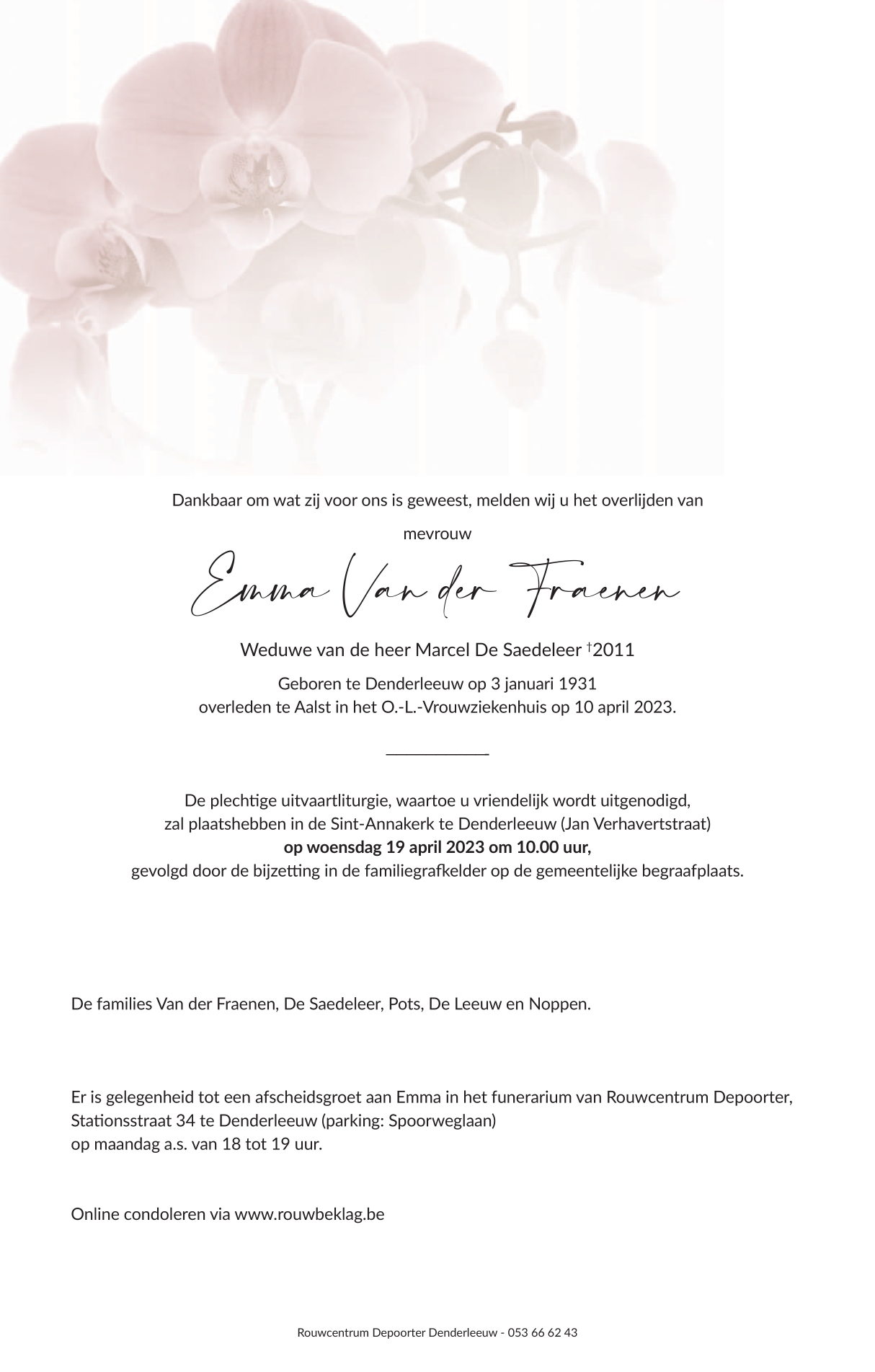 Nacida en Denderleeuw (9470) el sábado, 3 de enero de 1931