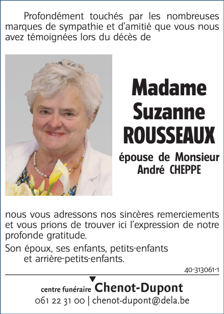 Décédée à Libramont (6800) le jeudi 28 février 2019 à l'âge de 81 ans