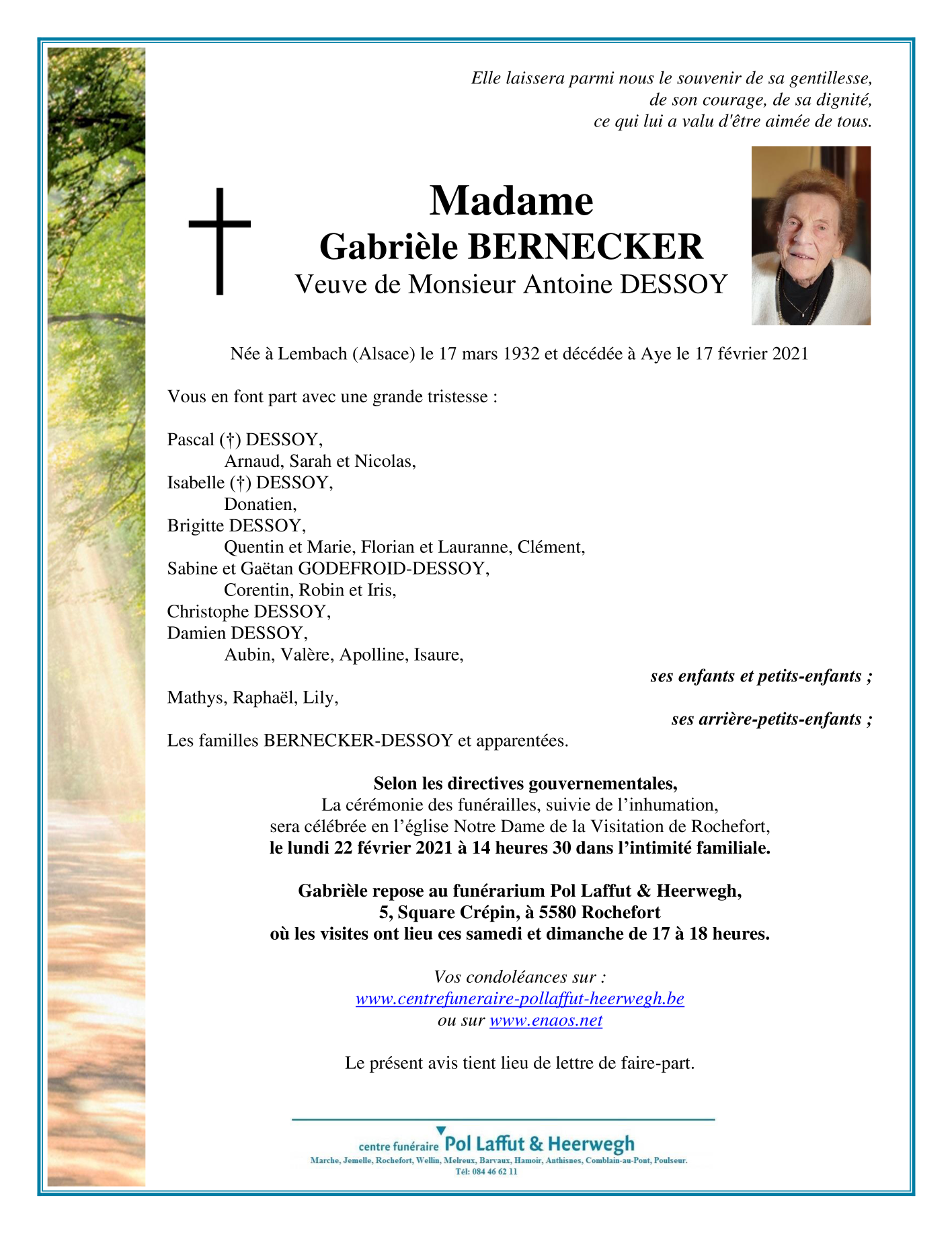 Overleden te Aye (6900) op woensdag 17 februari 2021 op 88-jarige leeftijd