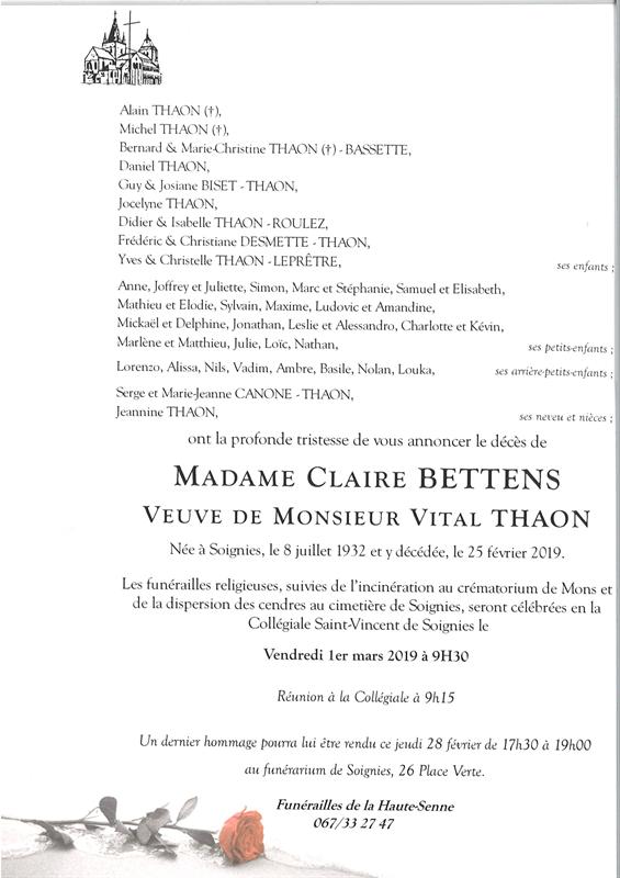 Fallecida en Soignies (7060) el lunes, 25 de febrero de 2019 a la edad de 86 años