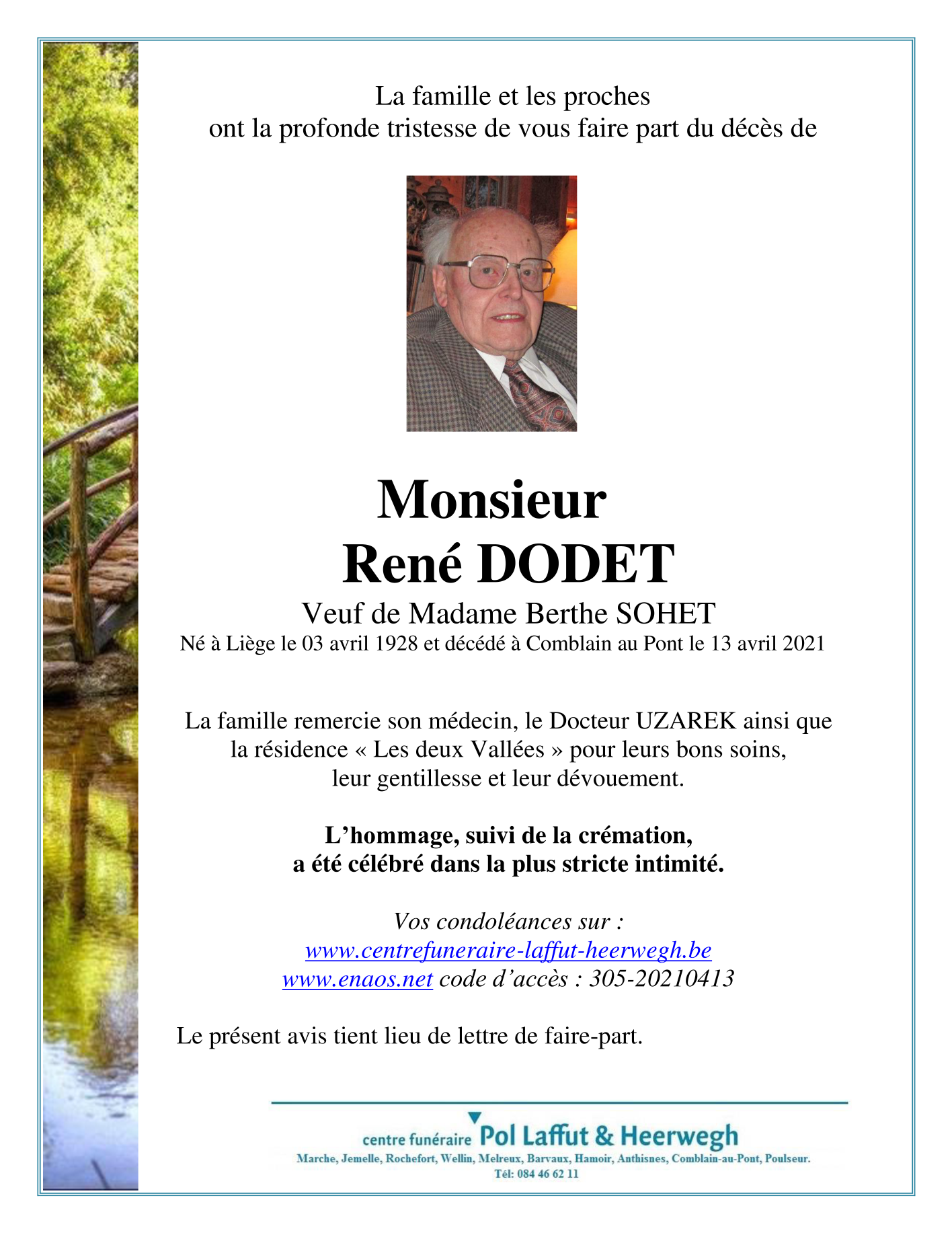 Décédé à Comblain-au-Pont (4170) le mardi 13 avril 2021 à l'âge de 93 ans
