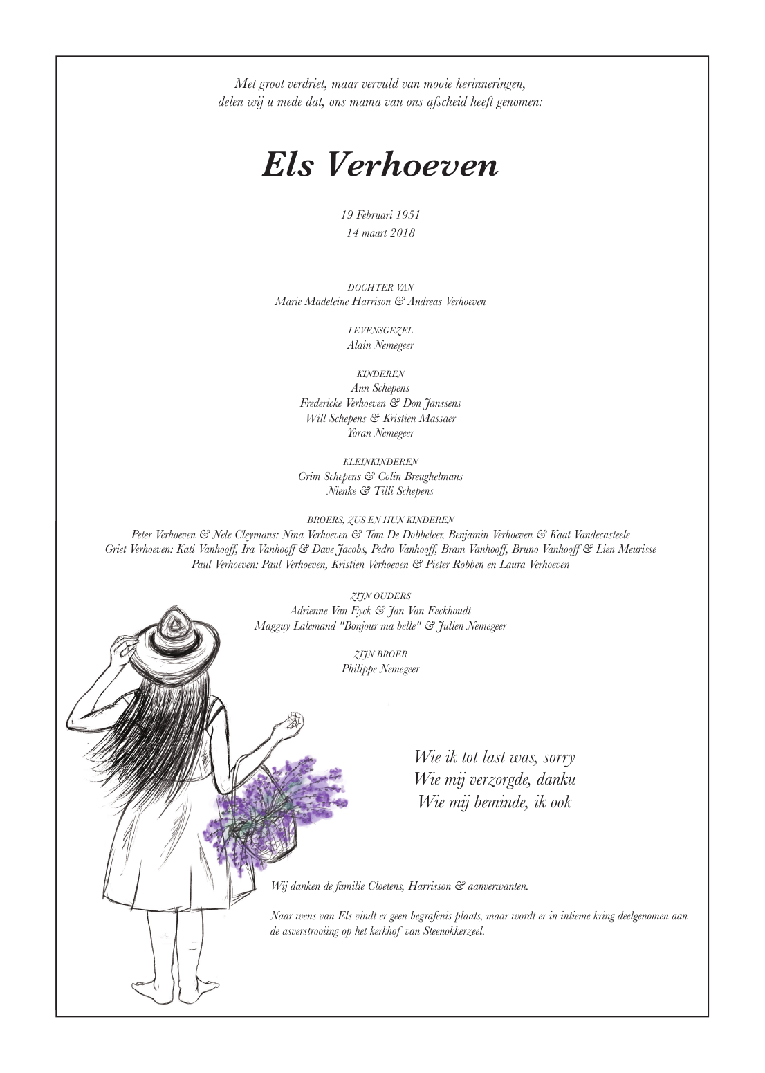 Décédée à Vilvoorde (1800) le mercredi 14 mars 2018 à l'âge de 67 ans
