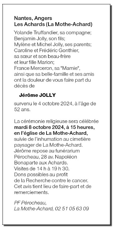 Décédé à Nantes (44000, France) le vendredi 4 octobre 2024 à l'âge de 52 ans