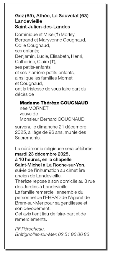 Overleden te Brem-sur-Mer (85470, Frankrijk) op zondag 21 december 2025 op 96-jarige leeftijd