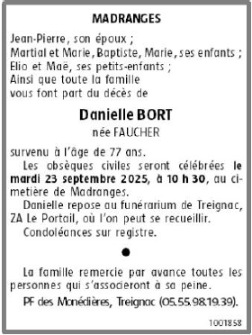 Overleden te Tulle (19000, Frankrijk) op vrijdag 19 september 2025 op 77-jarige leeftijd