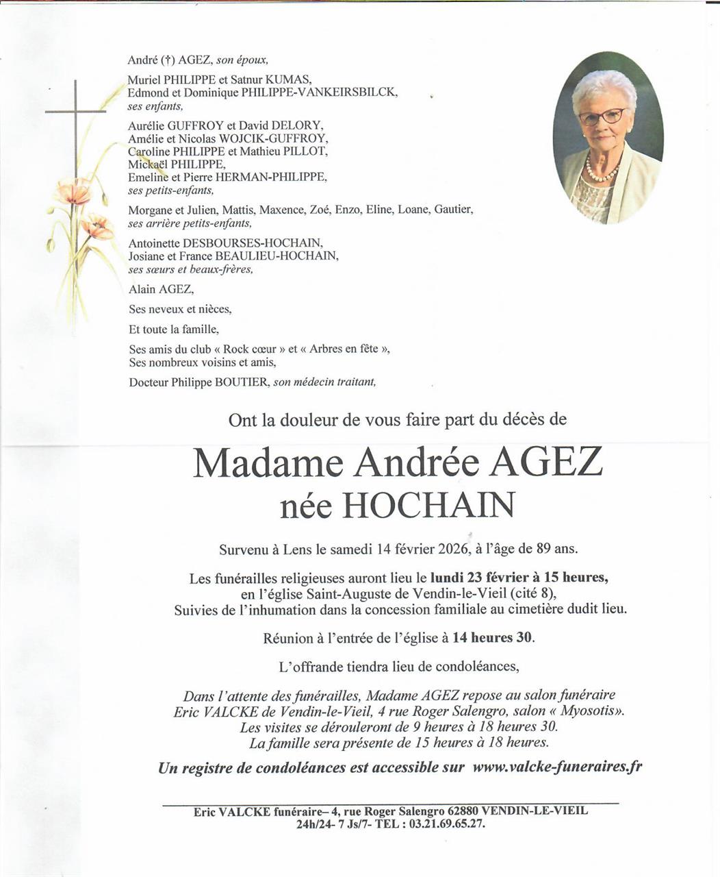 Madame Andrée AGEZ née HOCHAIN