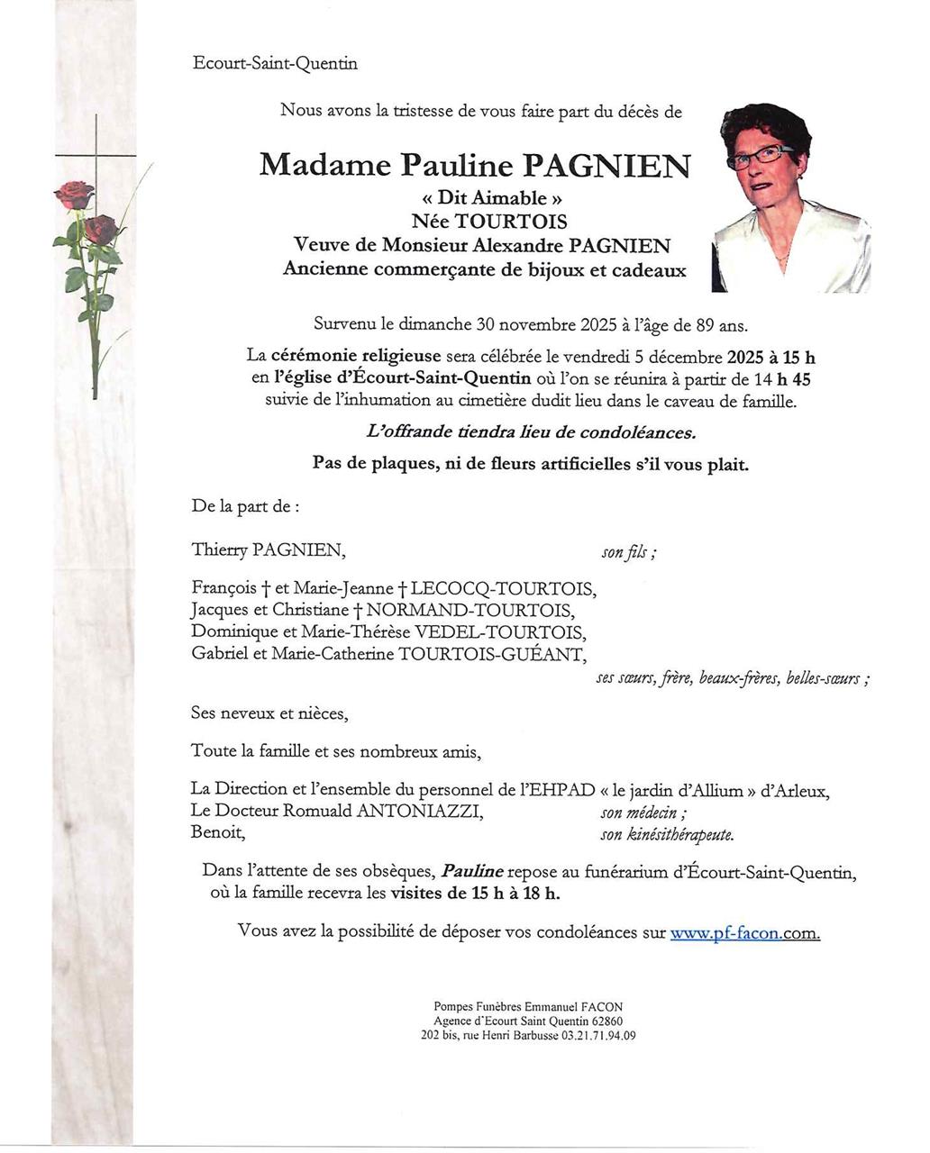 Décédée à Arleux (59151, France) le lundi 1 décembre 2025 à l'âge de 89 ans