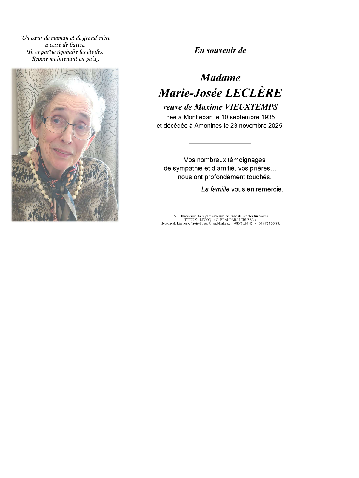 Died in Amonines (6997) on 23 November 2025 at the age of 90 years