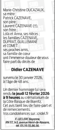 Died in Anglet (64600, France) on 30 January 2026 at the age of 48 years
