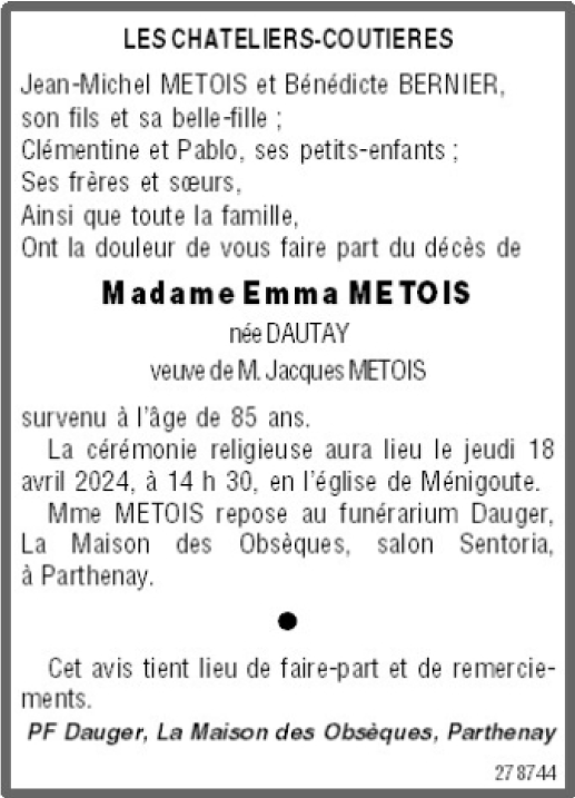 Madame Emma METOIS née DAUTAY