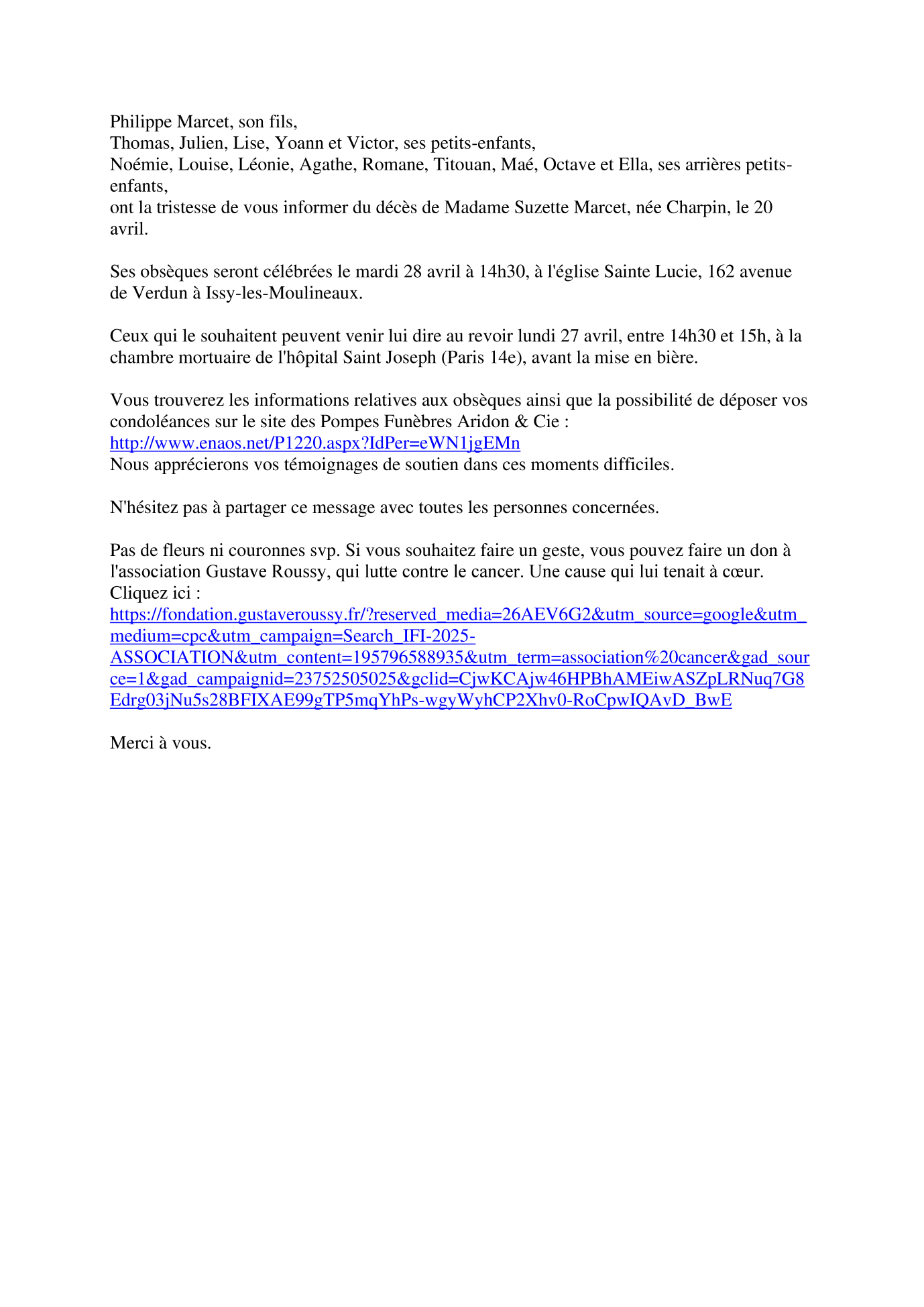 Annonce nécrologique