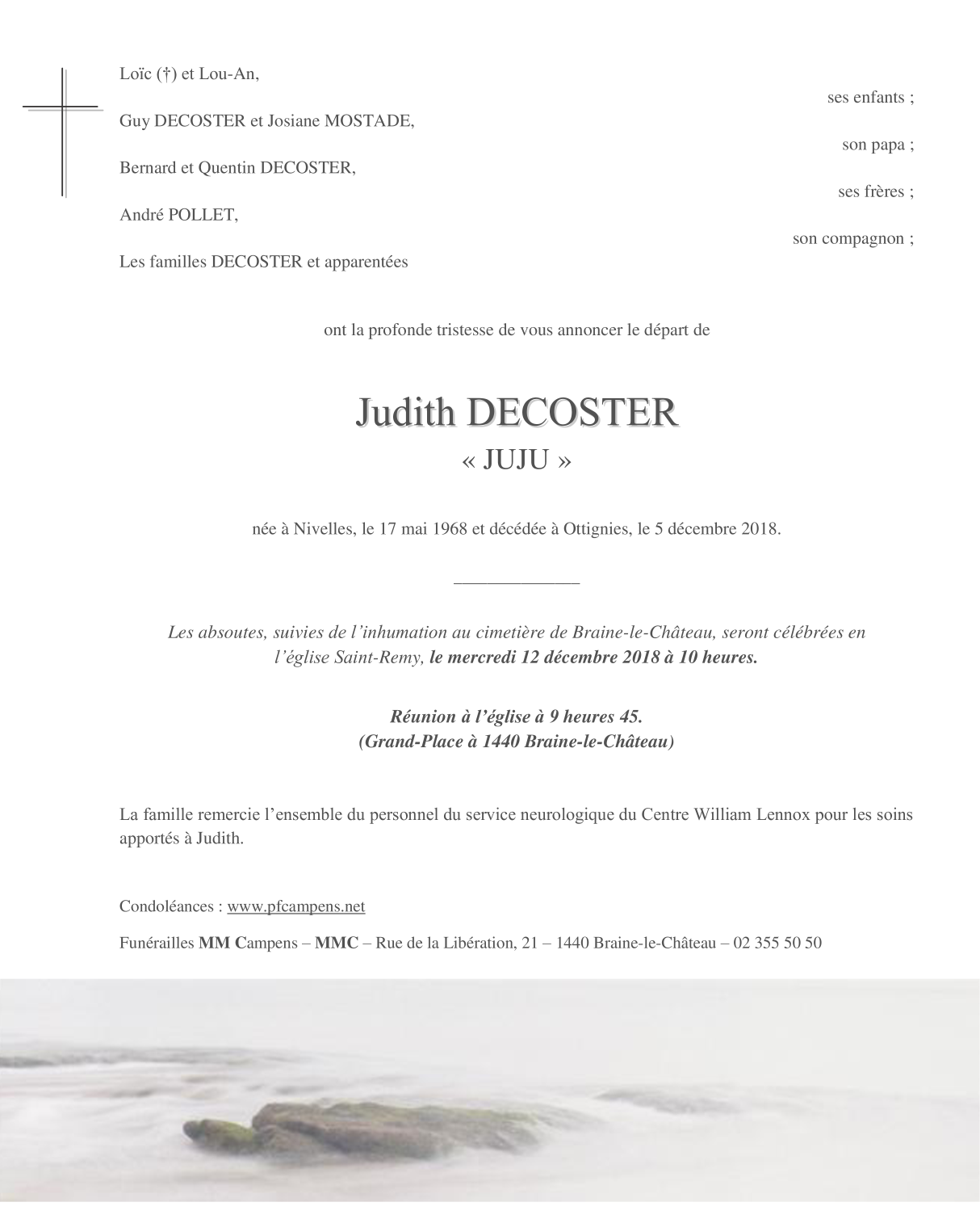 Décédée à Ottignies (1340) le mercredi 5 décembre 2018 à l'âge de 50 ans