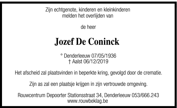 Died in Aalst (9300) on 06 December 2019 at the age of 83 years