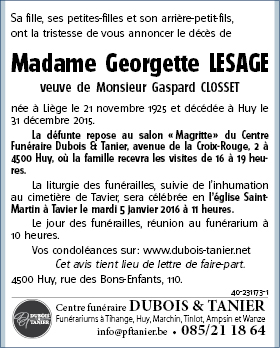 Overleden te Huy (4500) op donderdag 31 december 2015 op 90-jarige leeftijd