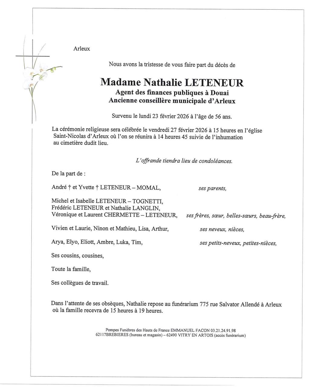 Décédée à Dechy (59187, France) le lundi 23 février 2026 à l'âge de 56 ans