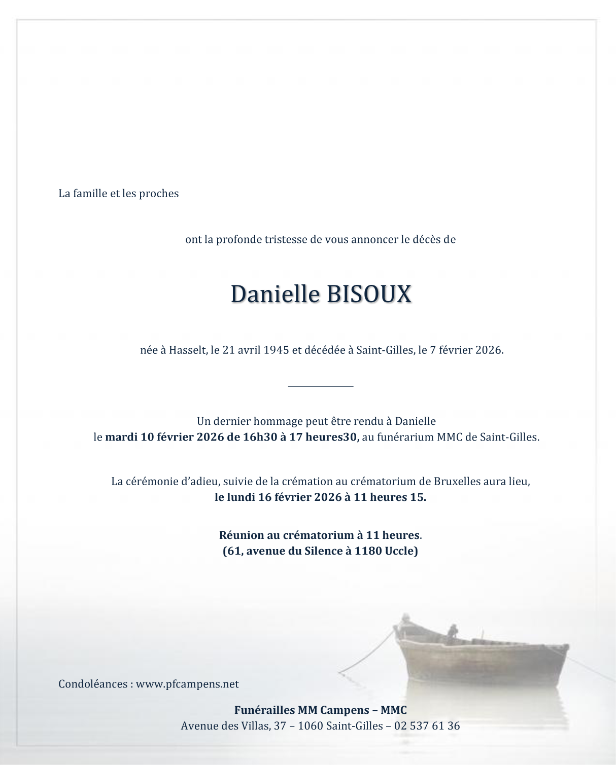 Décédée à Saint-Gilles (1060) le samedi 7 février 2026 à l'âge de 80 ans