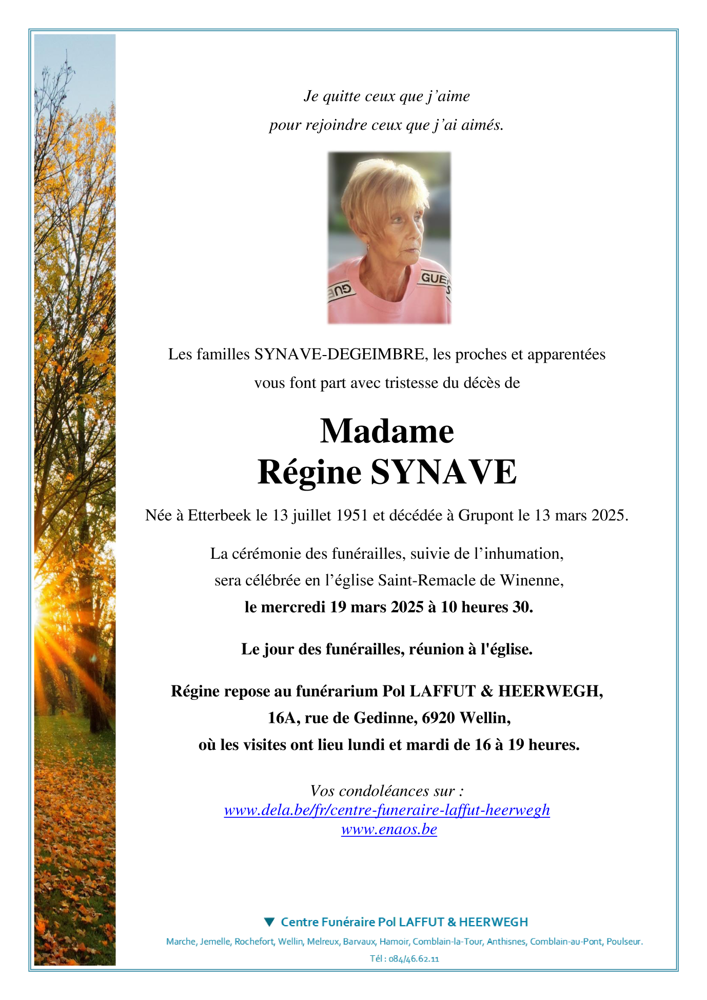 Died in Grupont (6927) on 13 March 2025 at the age of 73 years