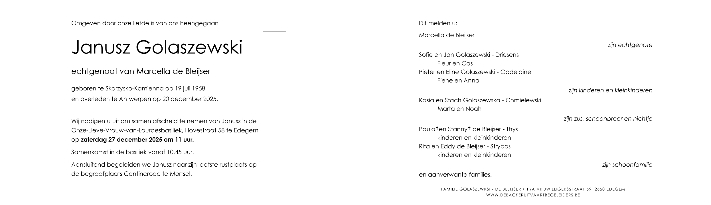 Décédé à Antwerpen (2060) le samedi 20 décembre 2025 à l'âge de 67 ans