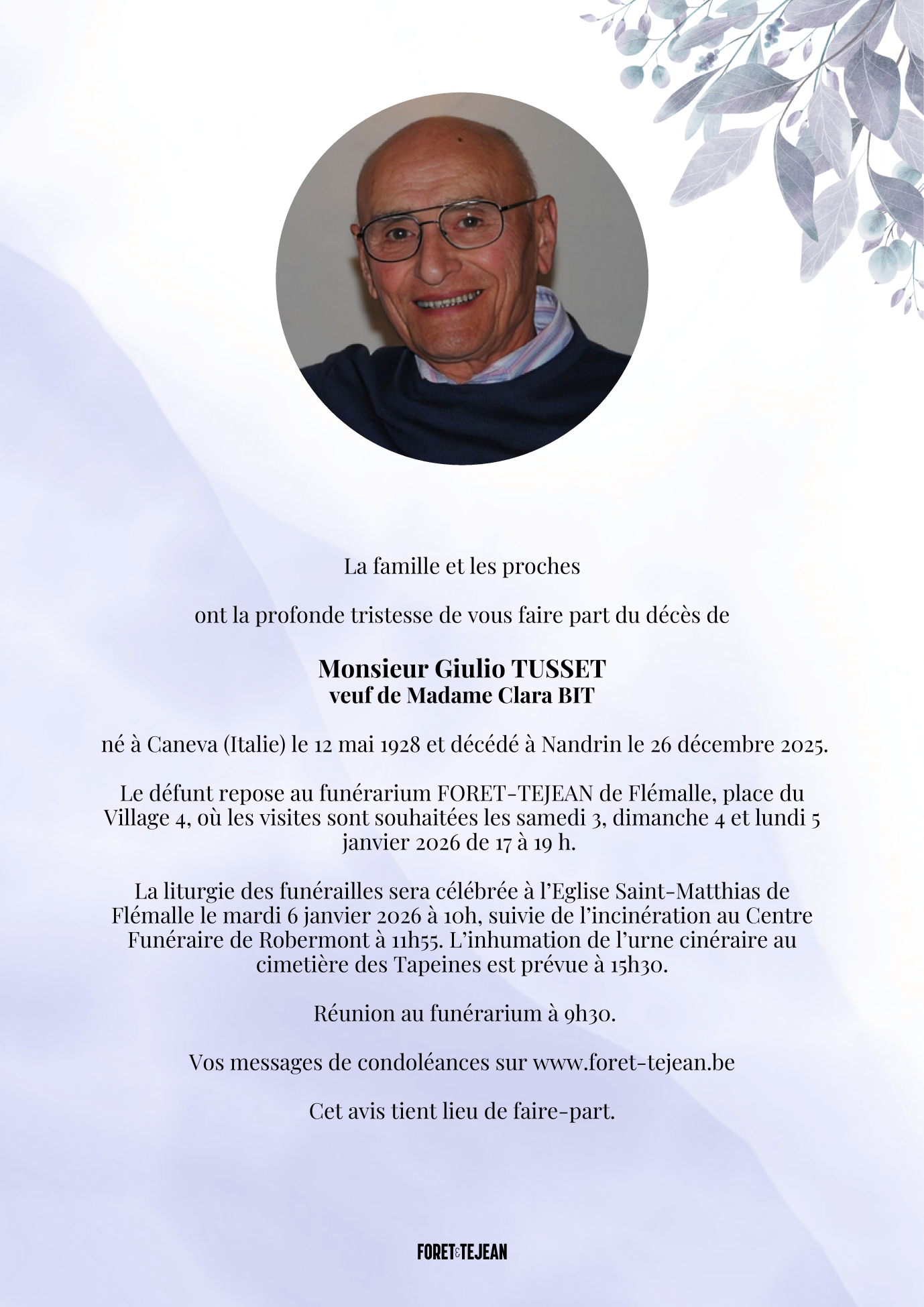 Décédé à Nandrin (4550) le vendredi 26 décembre 2025 à l'âge de 97 ans