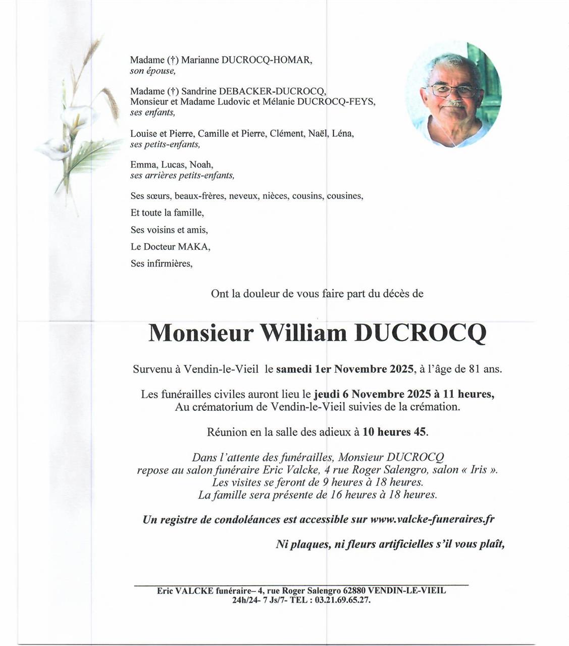 Décédé à Vendin-le-Vieil (62880, France) le samedi 1 novembre 2025 à l'âge de 81 ans