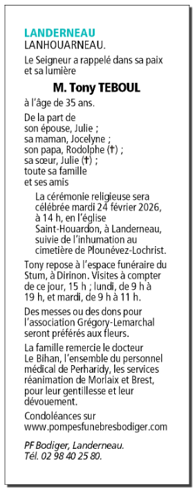 Died in Brest (29200, France) on 20 February 2026 at the age of 35 years