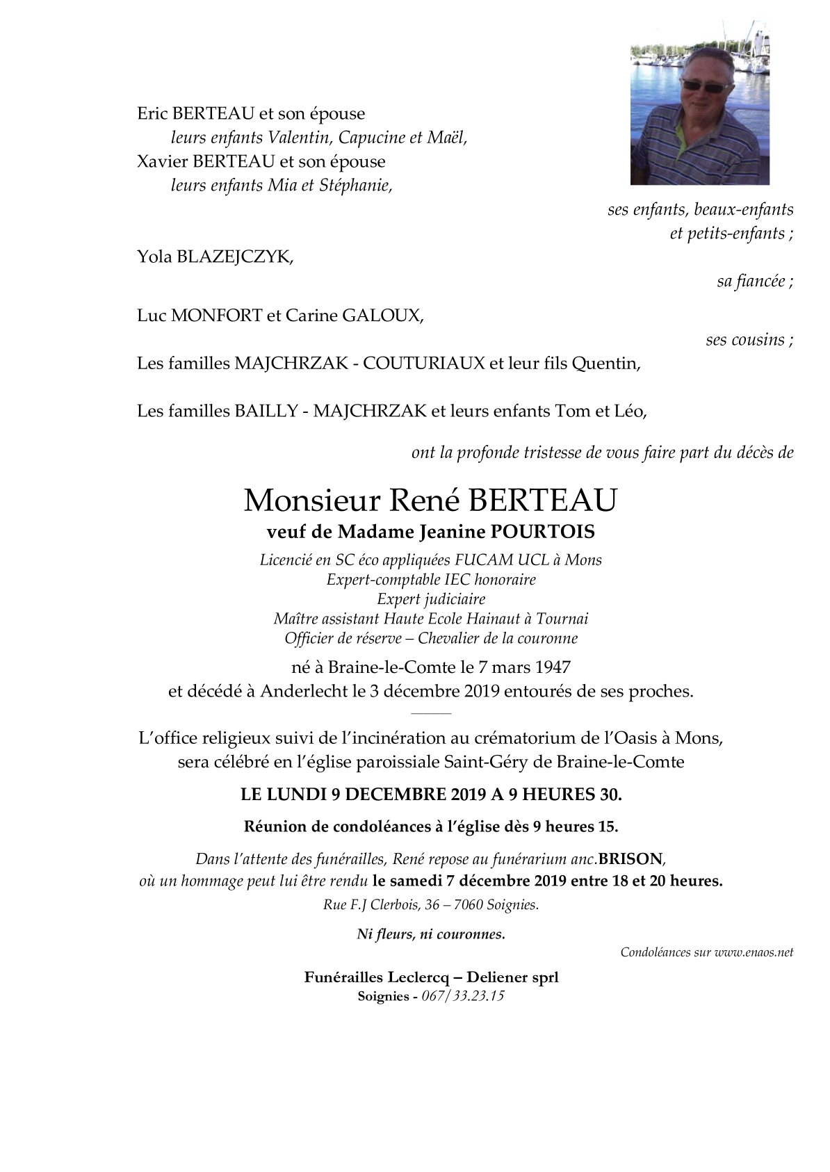 Décédé à Anderlecht (1070) le mardi 3 décembre 2019 à l'âge de 72 ans