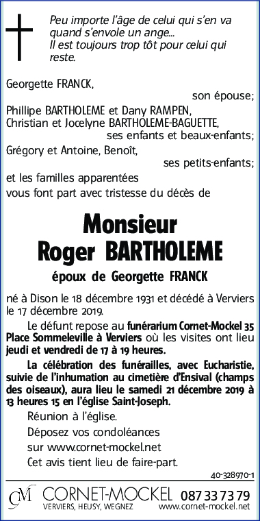 Died in Verviers (4800) on 17 December 2019 at the age of 87 years