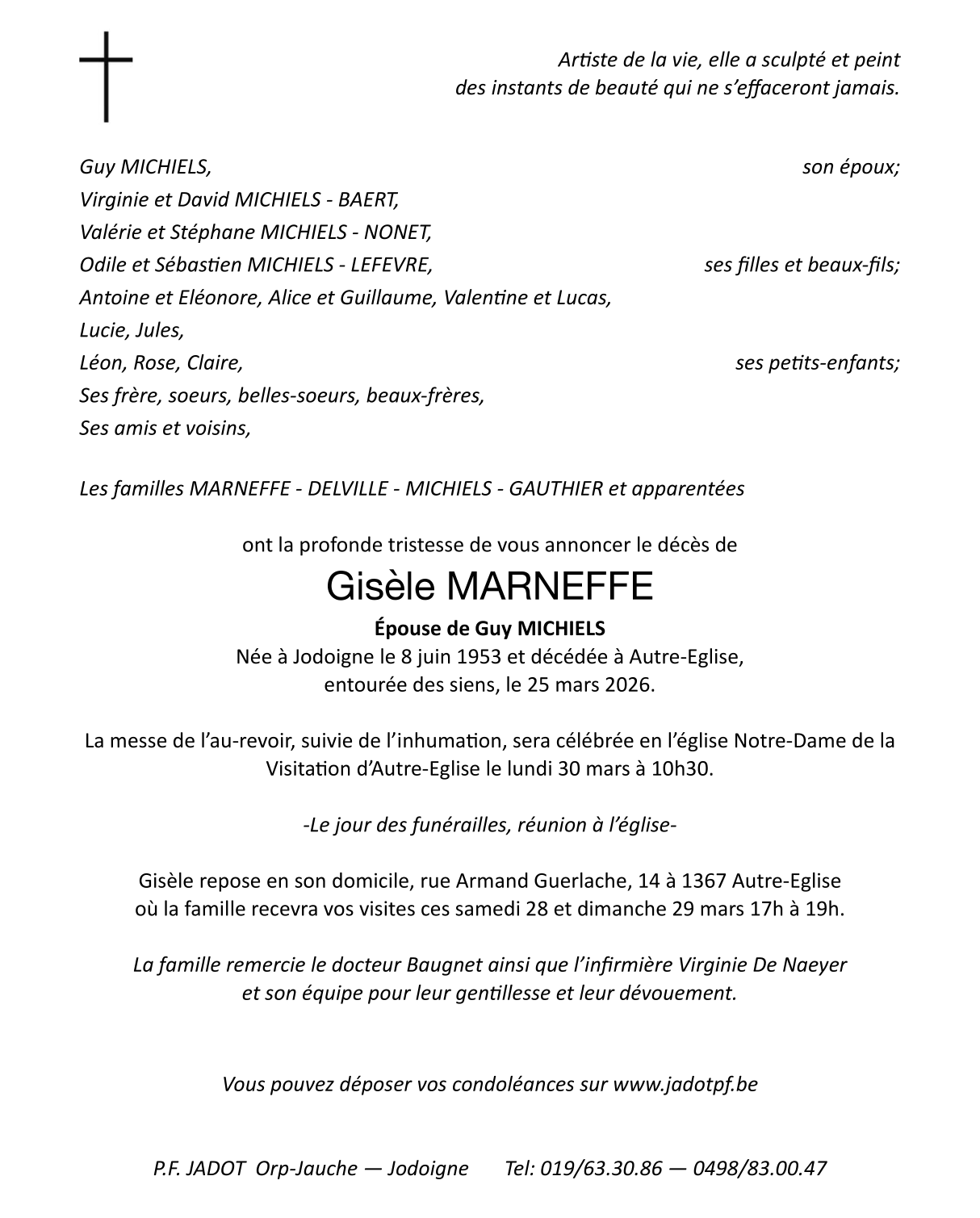 Epouse de Monsieur Guy Michiels