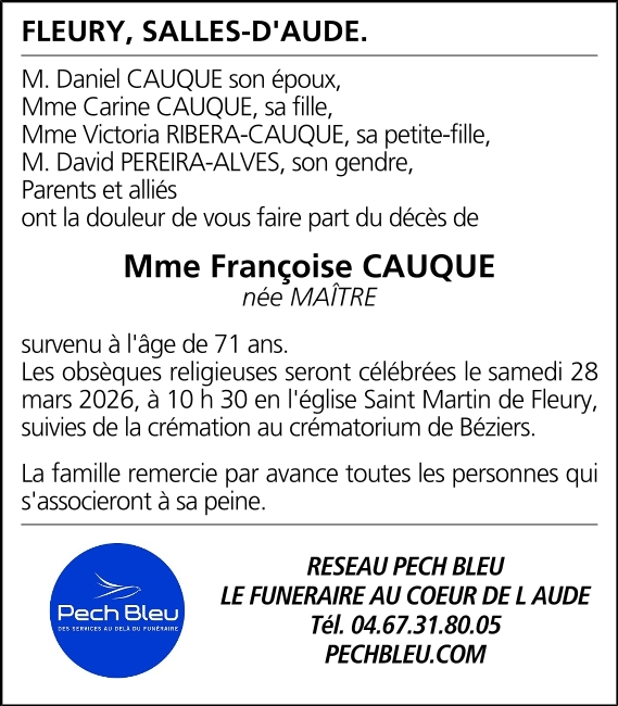 Décédée à Narbonne (11100, France) le samedi 21 mars 2026 à l'âge de 71 ans