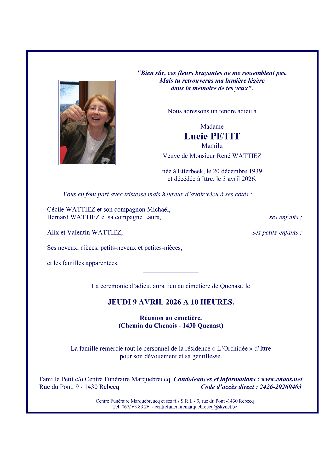 Died in Ittre (1460) on 03 April 2026 at the age of 86 years