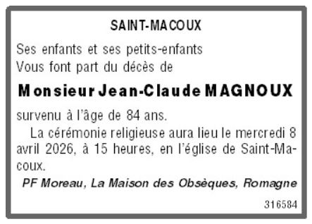 Fallecido en Limalonges (79190, Francia) el jueves, 2 de abril de 2026 a la edad de 84 años
