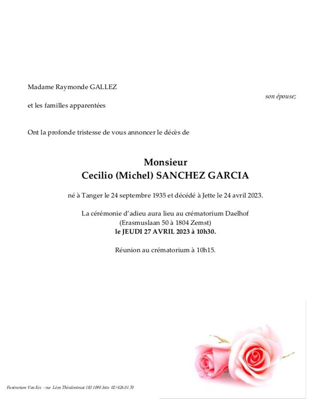 Fallecido en Bruxelles (Jette) (1090) el lunes, 24 de abril de 2023 a la edad de 87 años