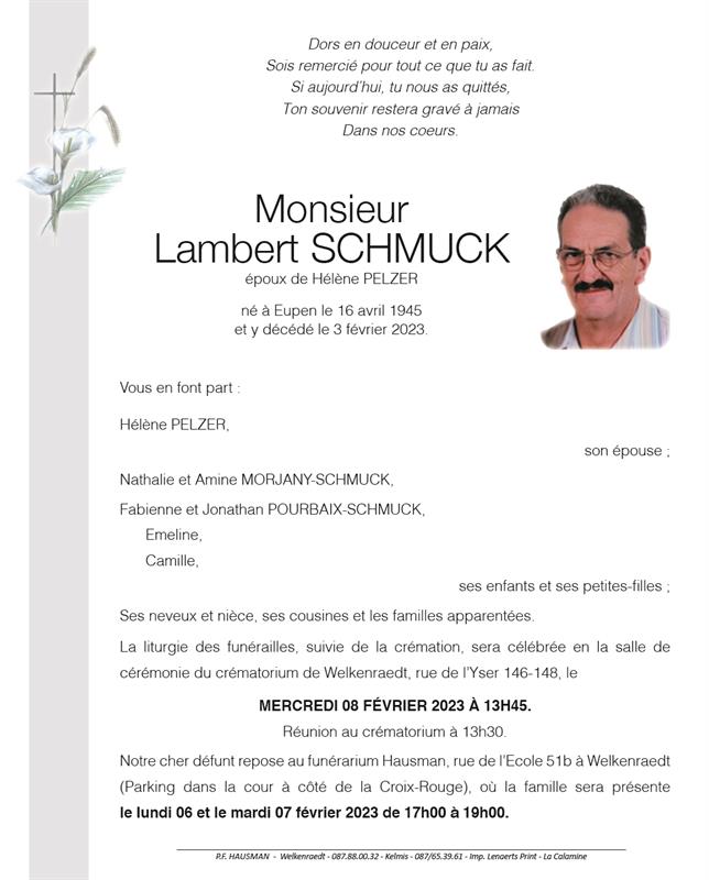 Décédé à Eupen (4700) le vendredi 3 février 2023 à l'âge de 77 ans
