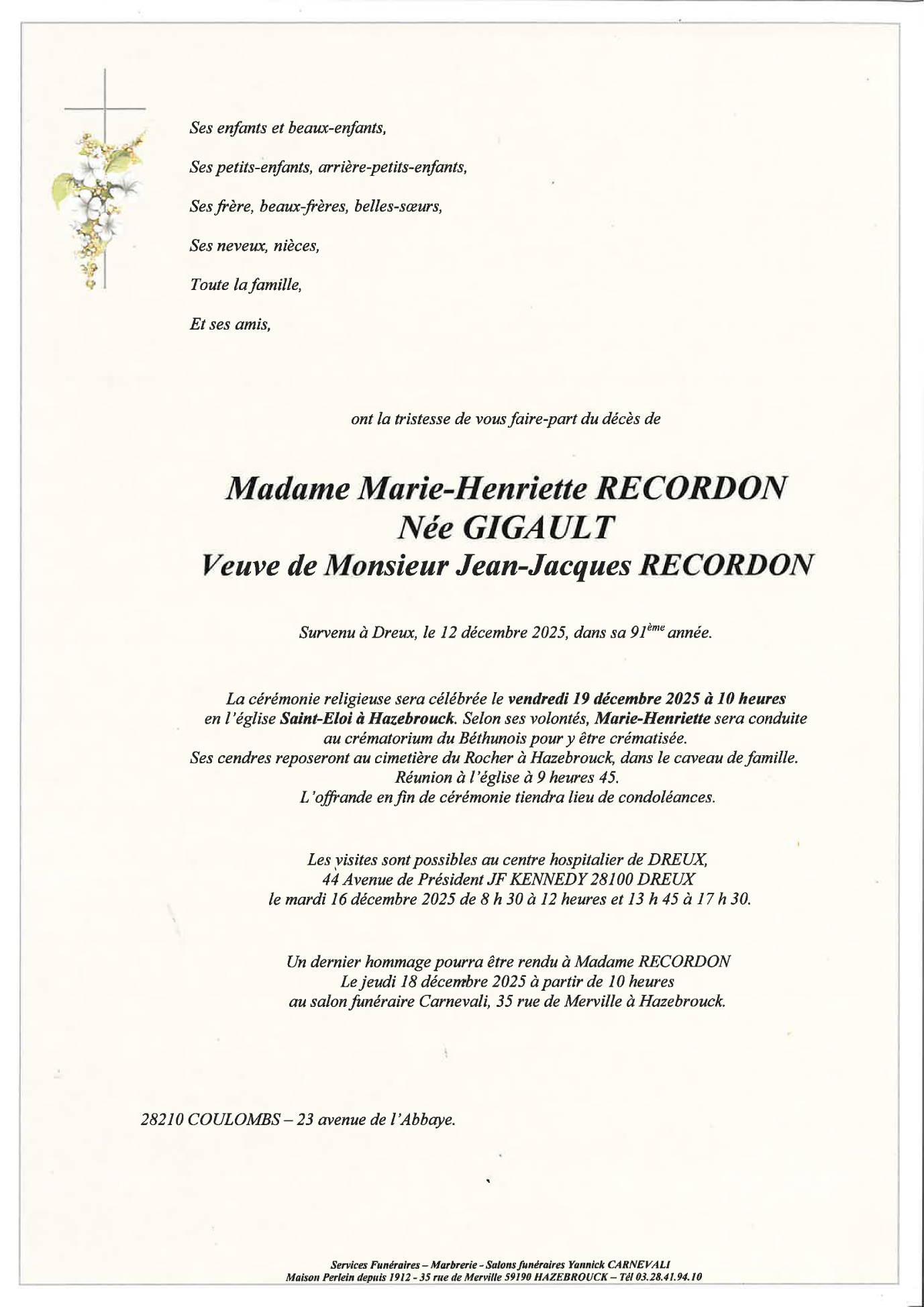 Annonce nécrologique