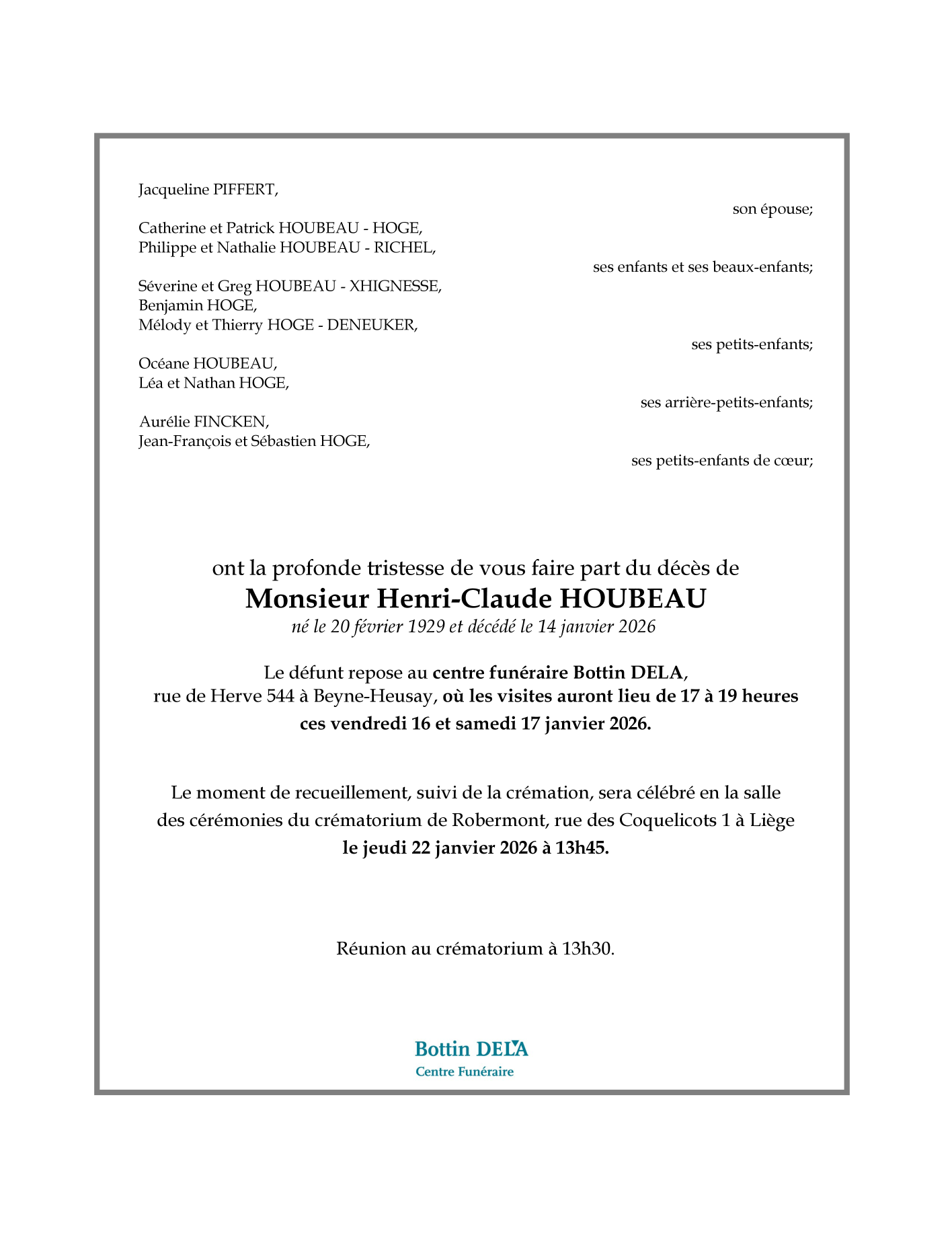 Monsieur Henri Claude HOUBEAU