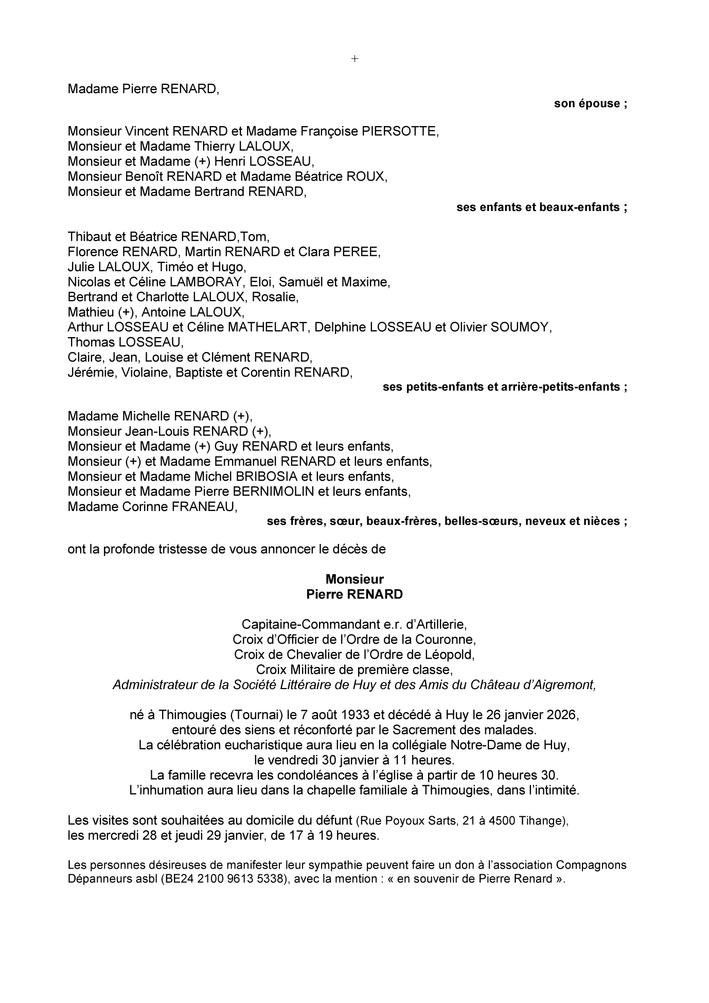 Décédé à Huy (4500) le lundi 26 janvier 2026 à l'âge de 92 ans