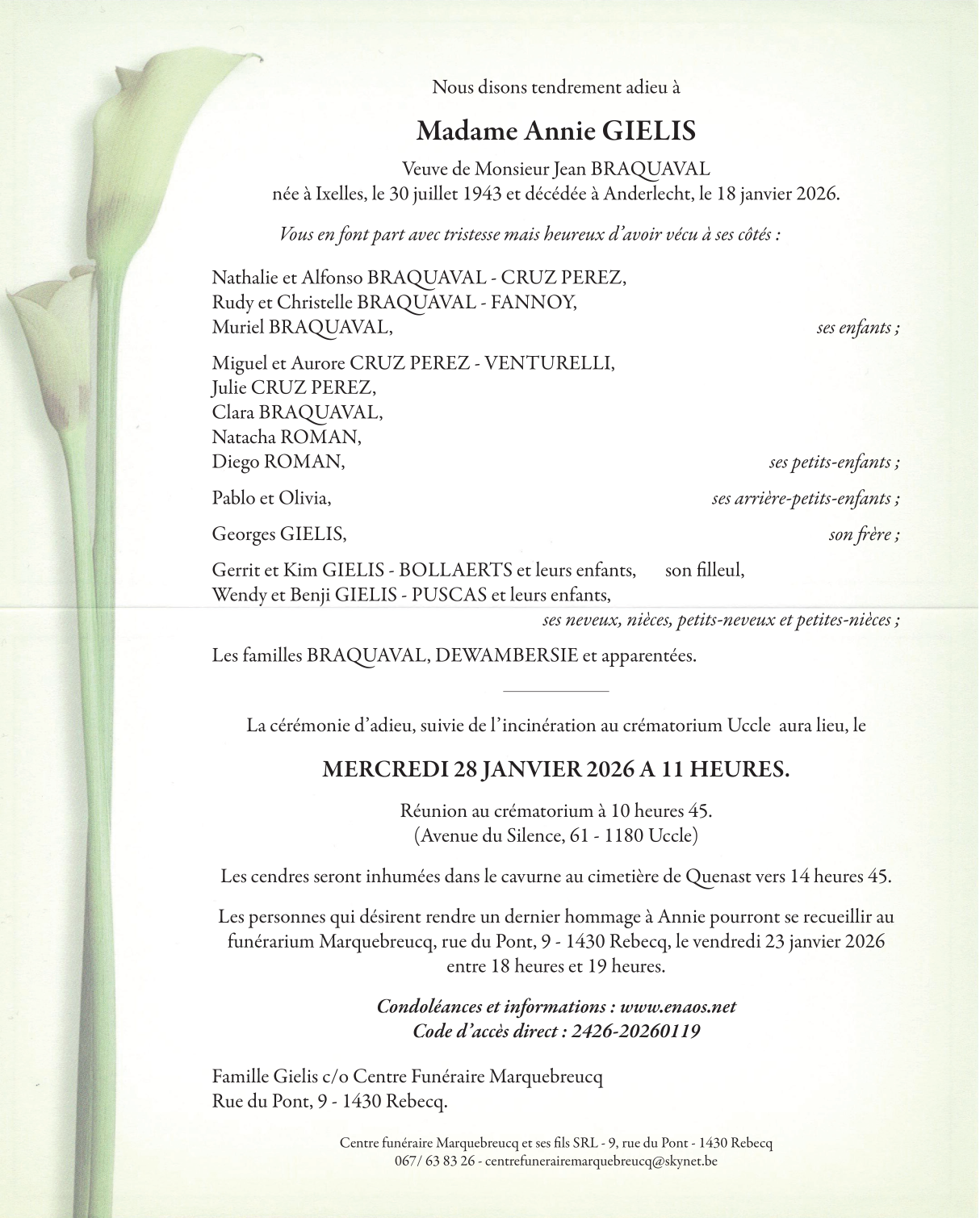 Décédée à Anderlecht (1070) le dimanche 18 janvier 2026 à l'âge de 82 ans